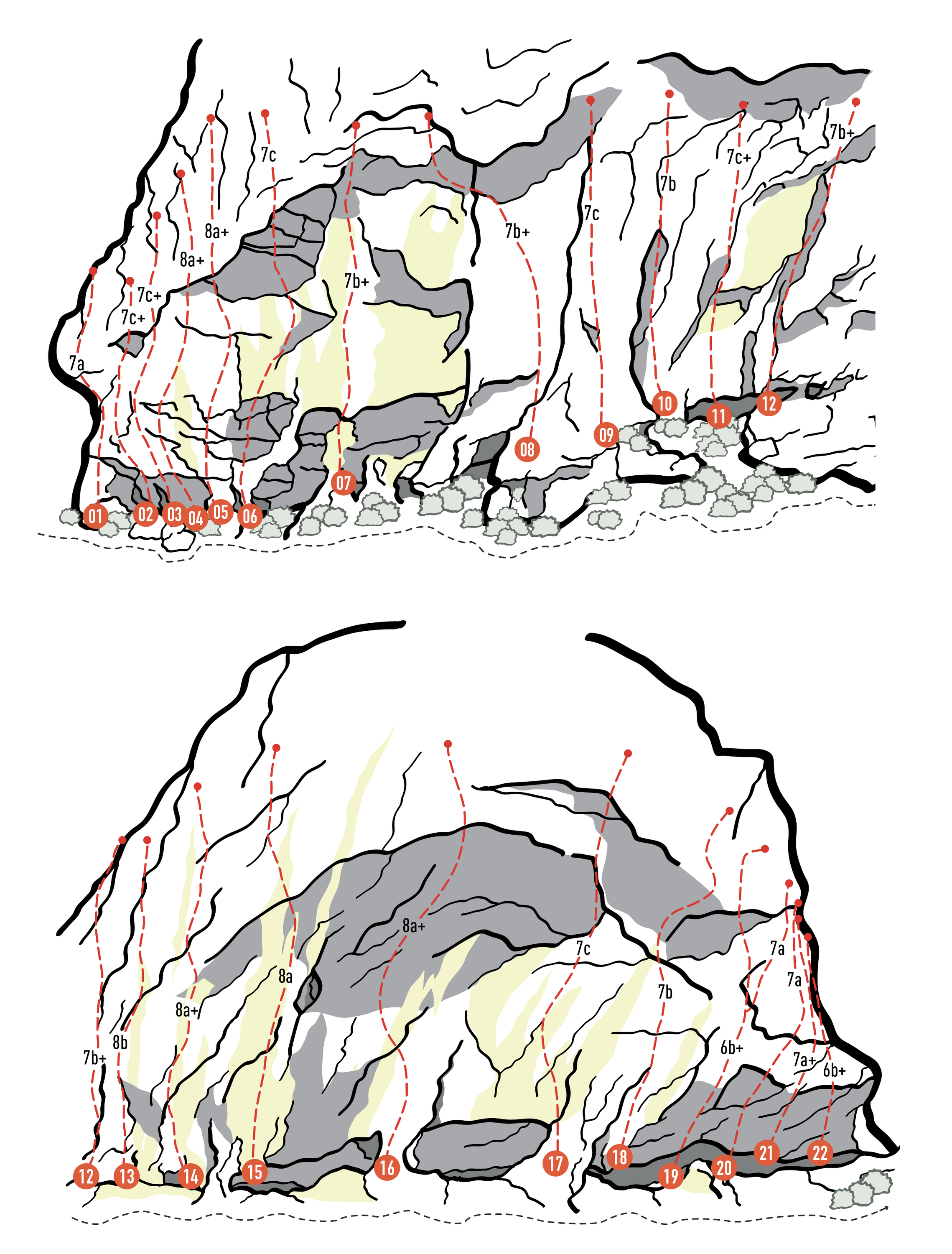 Nel 2018 ho così scoperto una grande parete divisa in due parti, posta sul versante opposto al comune di Alto all’ingresso della Alta valle. Muri grigi striati strapiombanti nella parte bassa, e una grande grotta con le prime parti più vertical…