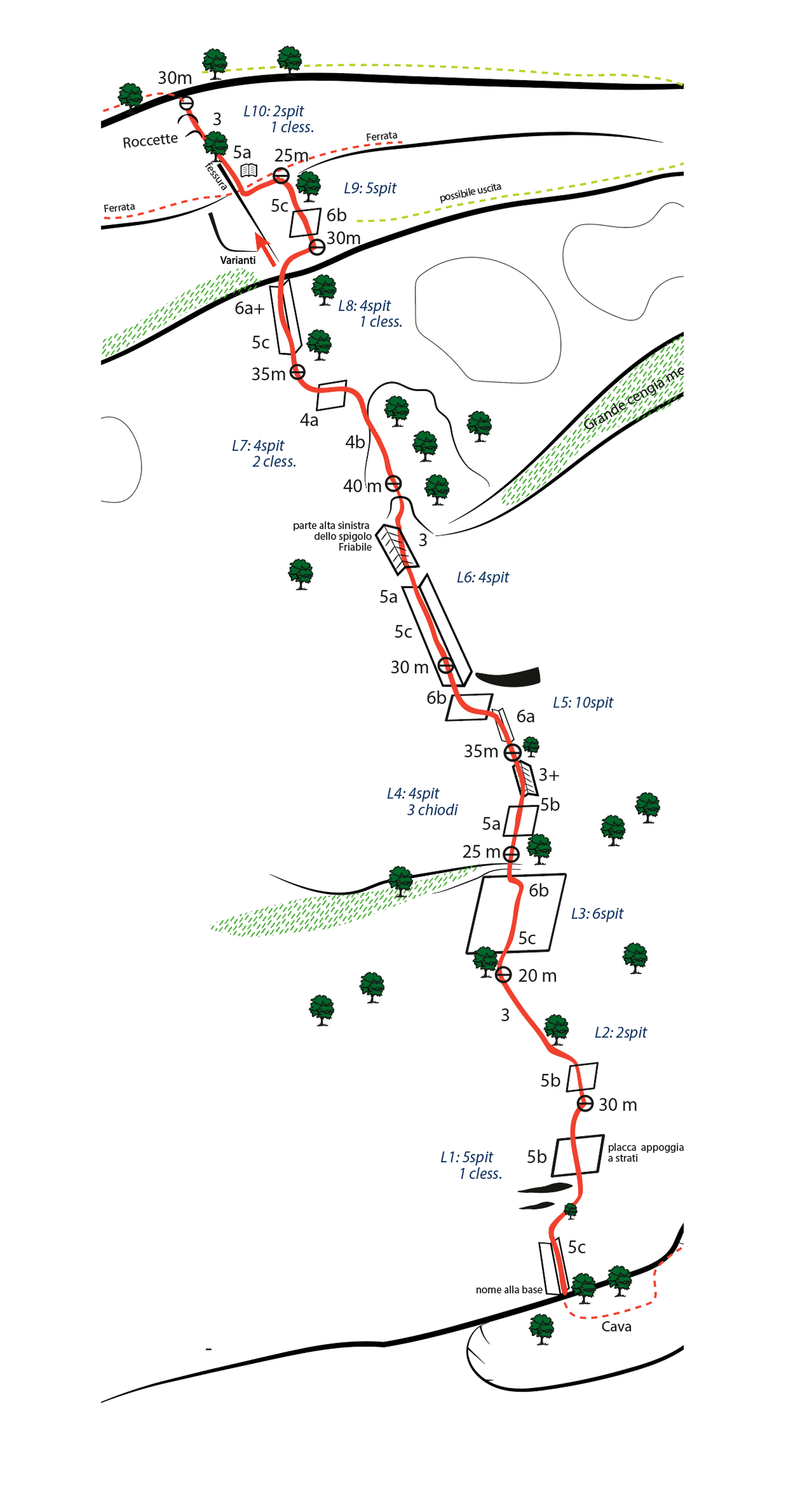 Le lunghezze centrali si sviluppano su roccia molto lavorata a prese grosse.…