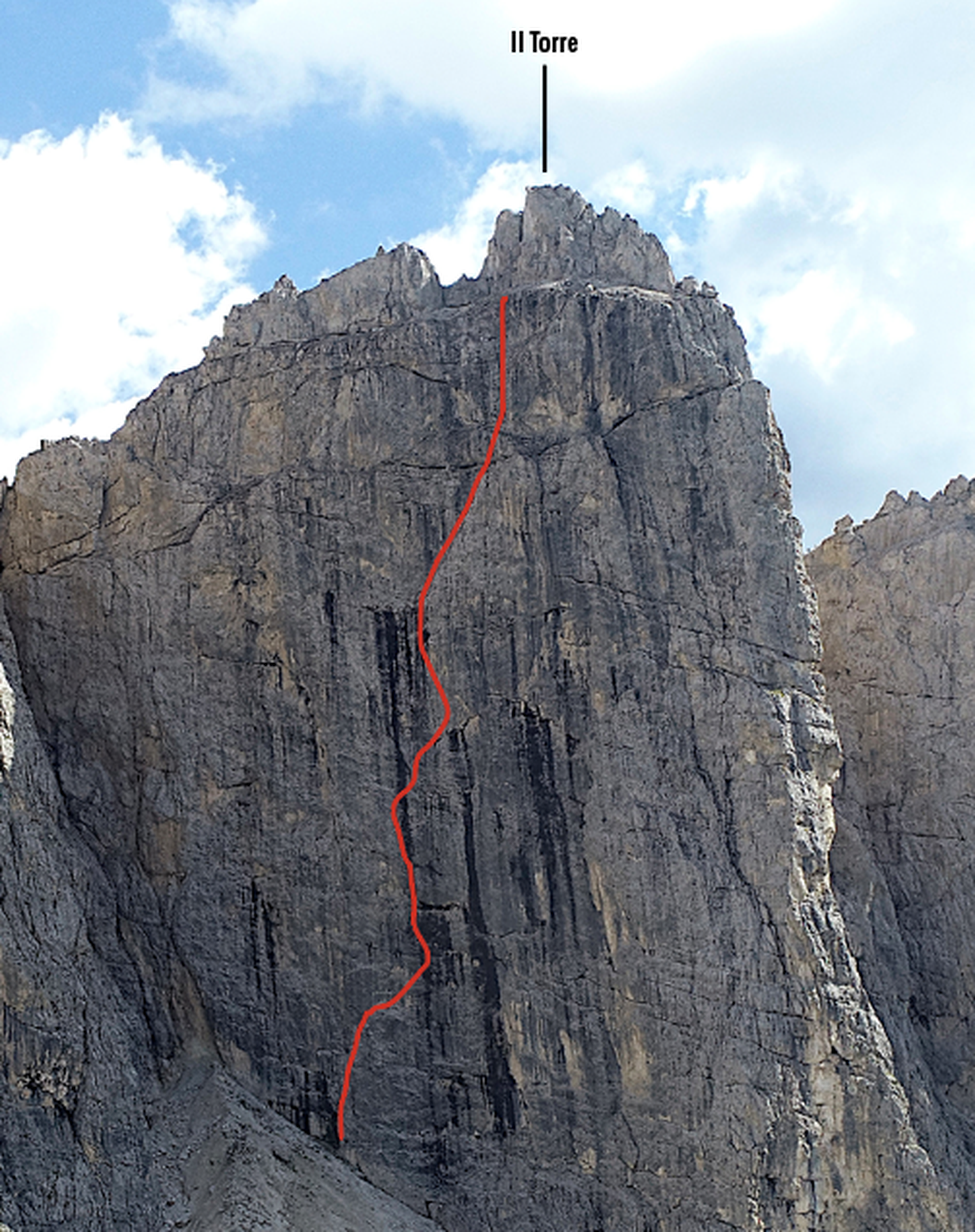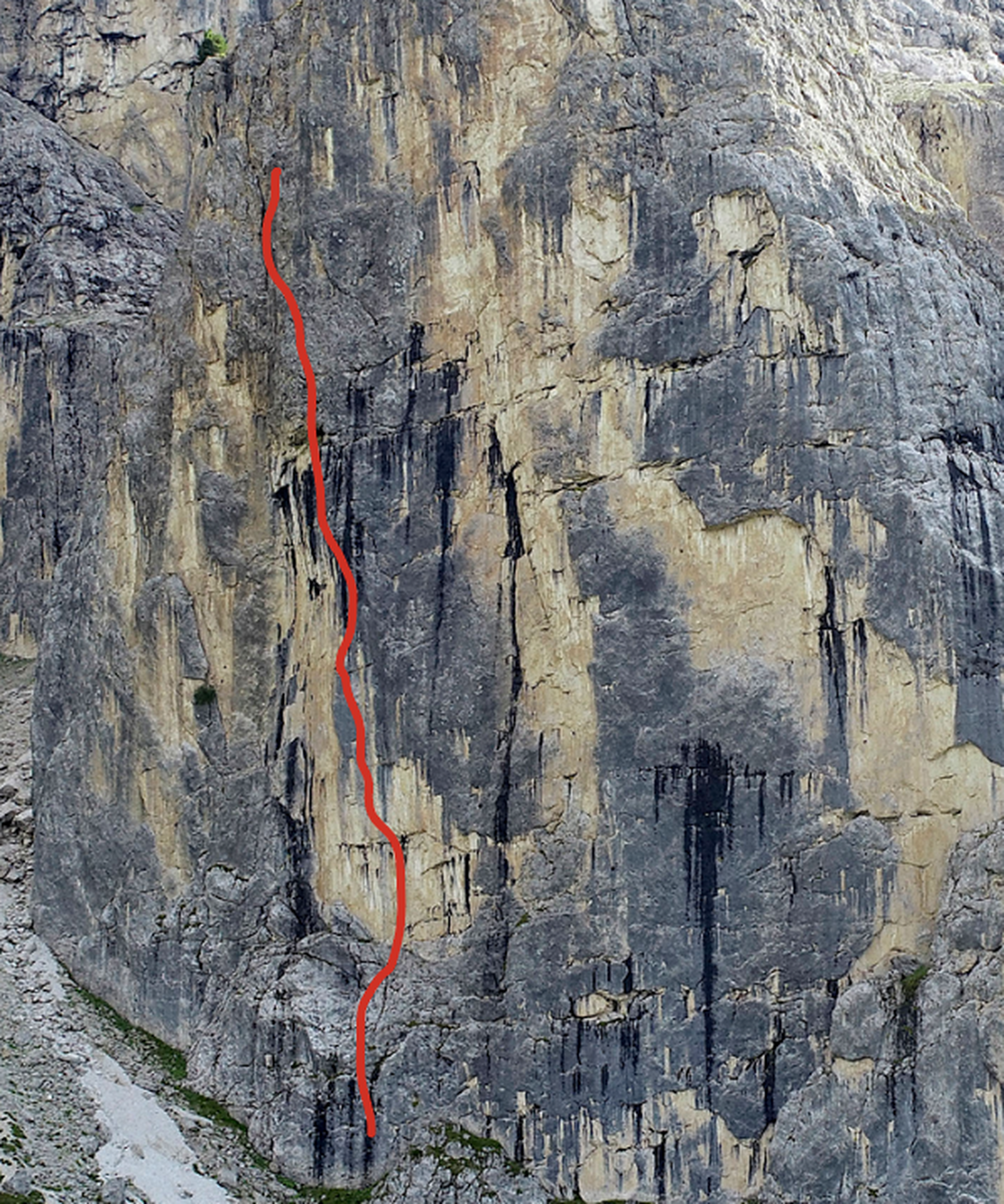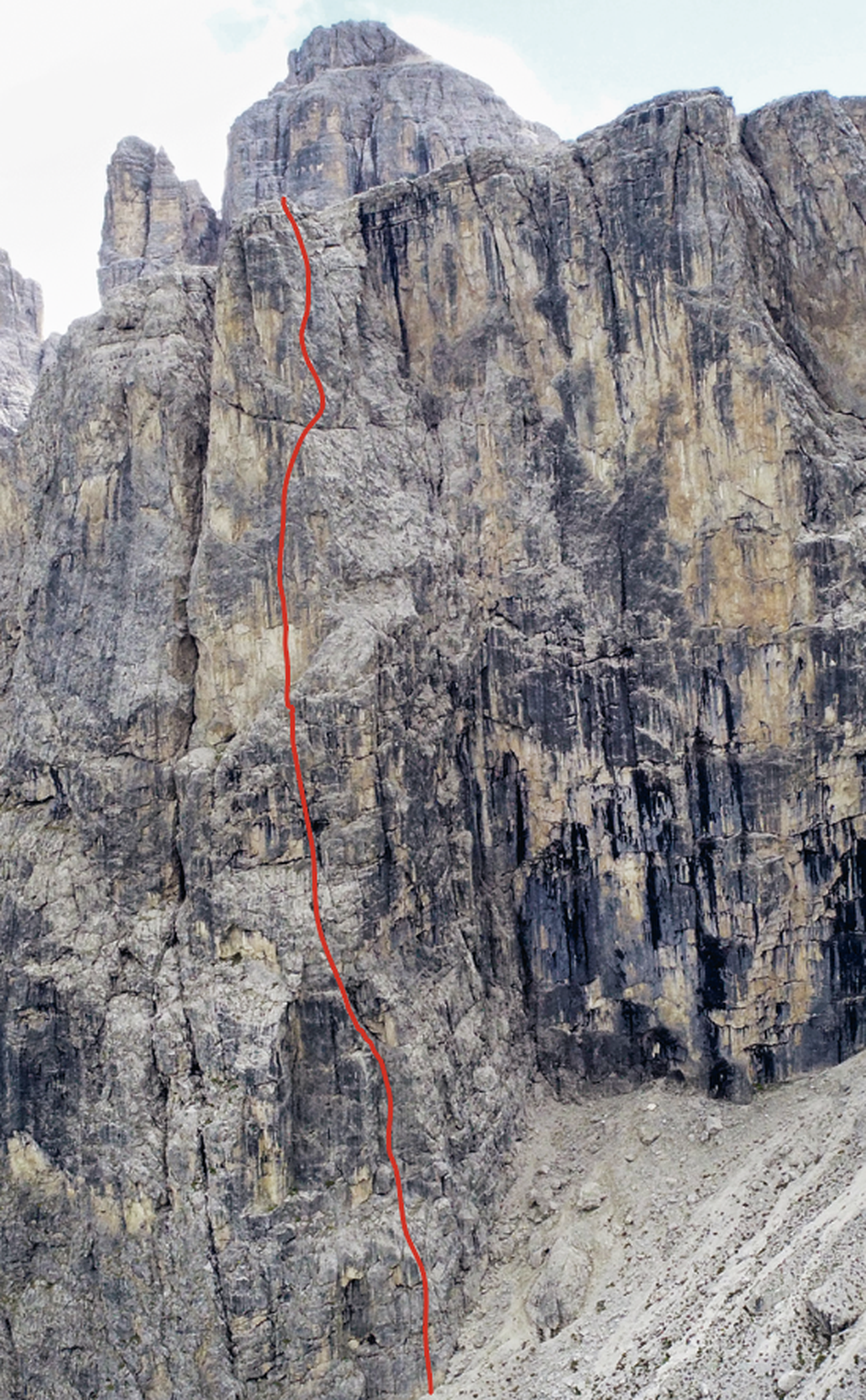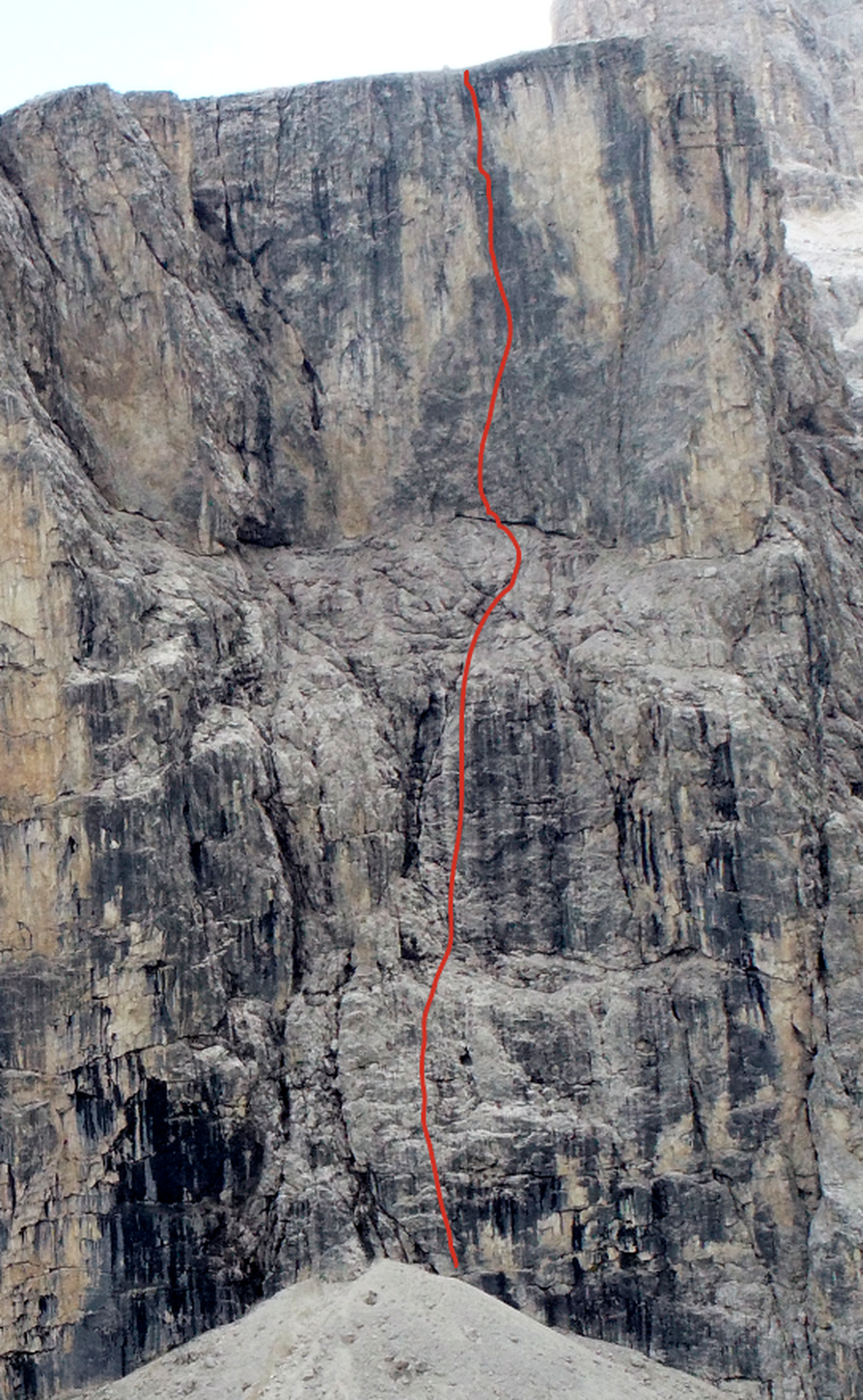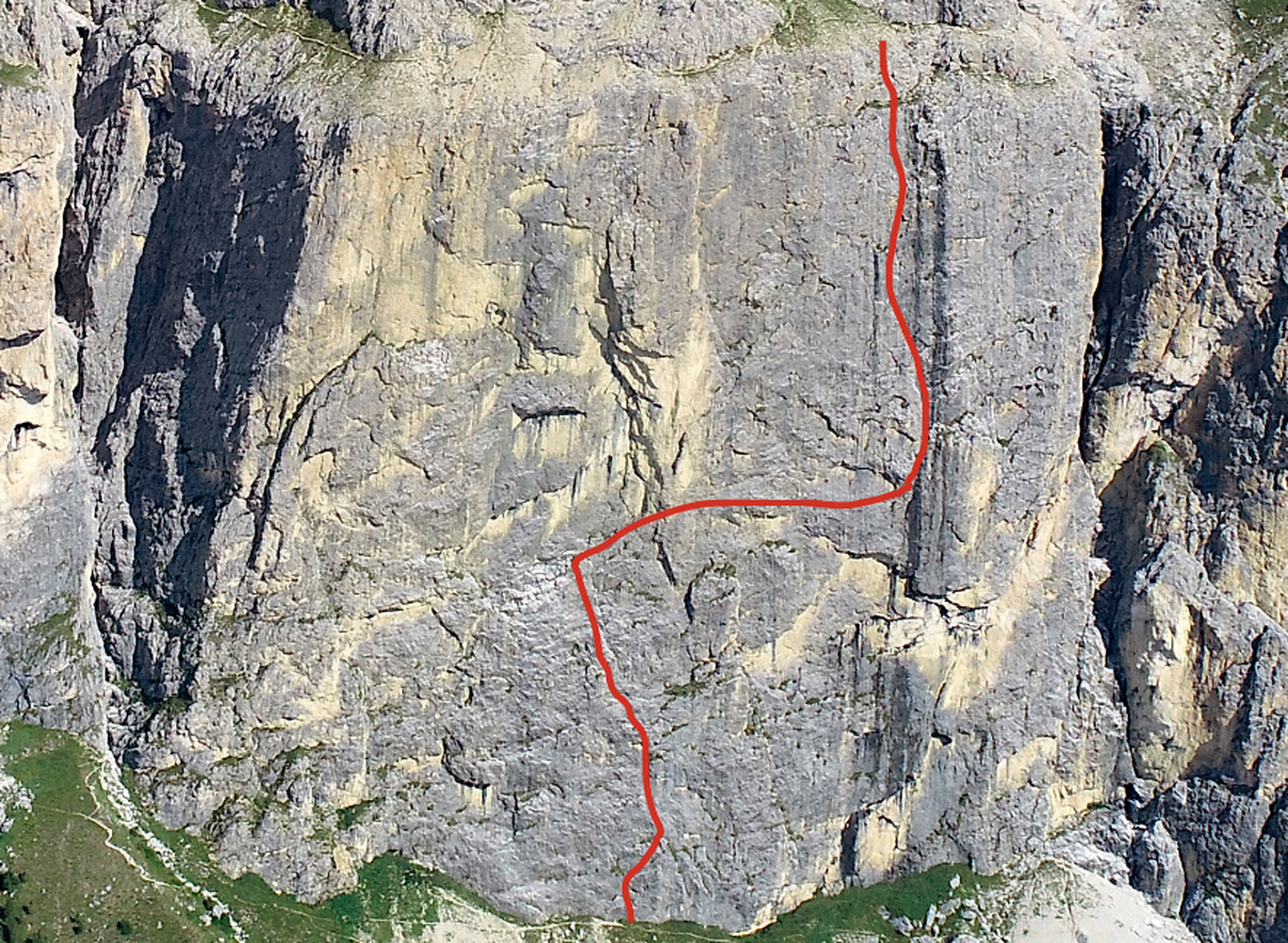 Via stupenda su roccia eccezionale, con il famoso traverso di 90 metri. Le difficoltà si aggirano per lo più intorno al V con pochi passi più difficili ben protetti; la parte finale dopo il traverso è meno chiodata.