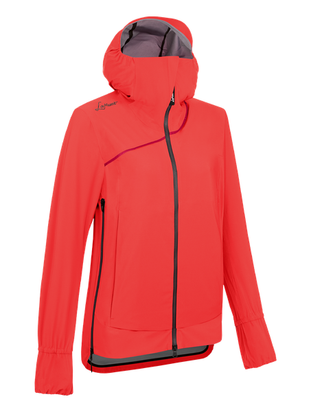 Per le avventure in montagna, tutto l’anno e con qualsiasi condizione atmosferica, LaMunt propone Sara 3L Light, impermeabile (10.000 mm di colonna d’acqua) ed estremamente leggera. Realizzata al 100% in poliestere riciclato con funzionalità antivento, ma altamente traspirante (10.000 g/m²/24 h), presenta un collo extra alto e un cappuccio antipioggia con visiera aderente per proteggere il viso, cuciture completamente nastrate e cerniere impermeabili. Gli speciali polsini doppi arricciati, oltre a rappresentare un modo intuitivo di regolare la lunghezza delle maniche, fungono da ulteriore barriera al vento e alla pioggia. Morbida, elasticizzata, femminile e altamente tecnica, la giacca Sara 3L Light si comprime facilmente per essere trasportata in tuta comodità.