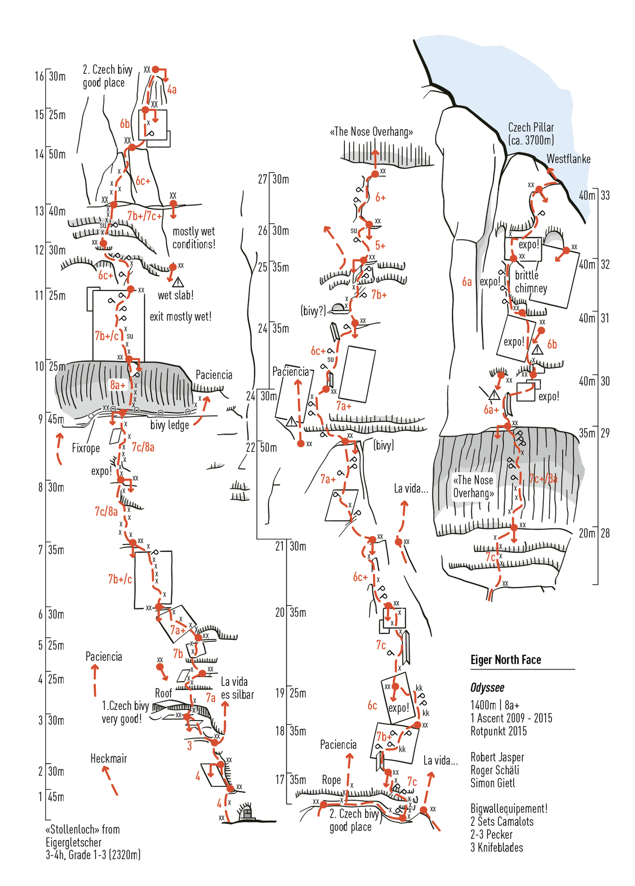 La Nord dell’Eiger: una parete storica, un teatro di grandi imprese verticali e uno di quei miti dell’alpinismo che ha saputo rinnovarsi di epoca in epoca, offrendo frontiere sempre nuove. Ne sono esempi moderni la visionaria salita di Metanoia di Jeff Lowe del 1991, i record di velocità di Ueli Steck e Dani Arnold, le innumerevoli salite di “local” quali Schaeli, Siegrist e Jasper. Nel nuovo millennio proprio questi ultimi sono stati gli autori di diverse vie molto impegnative e caratterizzate da una visione quasi “sportiva”, su una parete che però, per il suo carattere severo e pericoloso, non lascia molto spazio alla sportività pura.