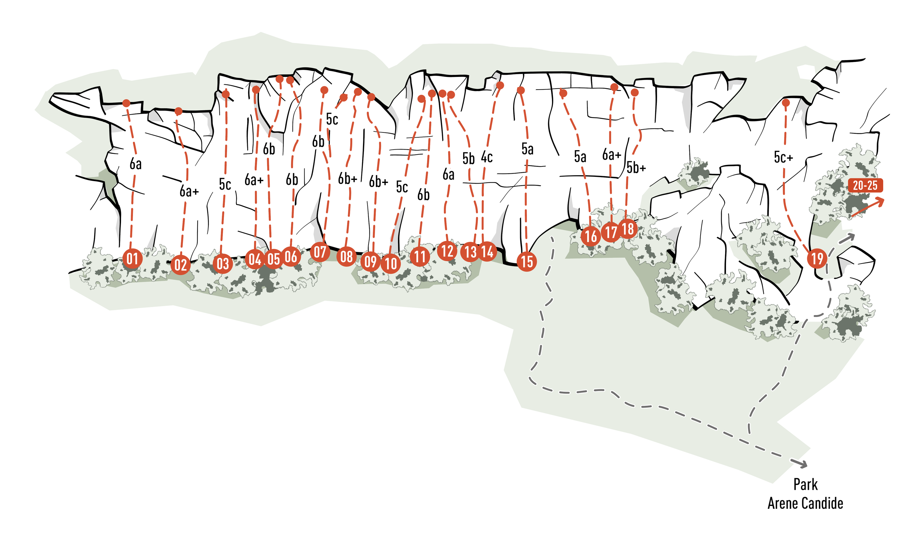 Mare, tanto mare, a volte stirato all’indietro dai venti del nord, spesso impetuoso nello spingersi in avanti cavalcato dall’impavido Libeccio. Sole, tanto sole, tanto piacevole in inverno quanto molesto d’estate. Roccia mordace e terra rossa, macchia e gariga, spessa, fitta, talvolta dispensatrice di sublimi profumi e sovente motivo di Imprecazioni al creatore per la difficoltà nel progredire metro dopo metro. Questa è l’area Verezzi – Caprazoppa – Arene Candide. Una zona piuttosto limitata, concentra…