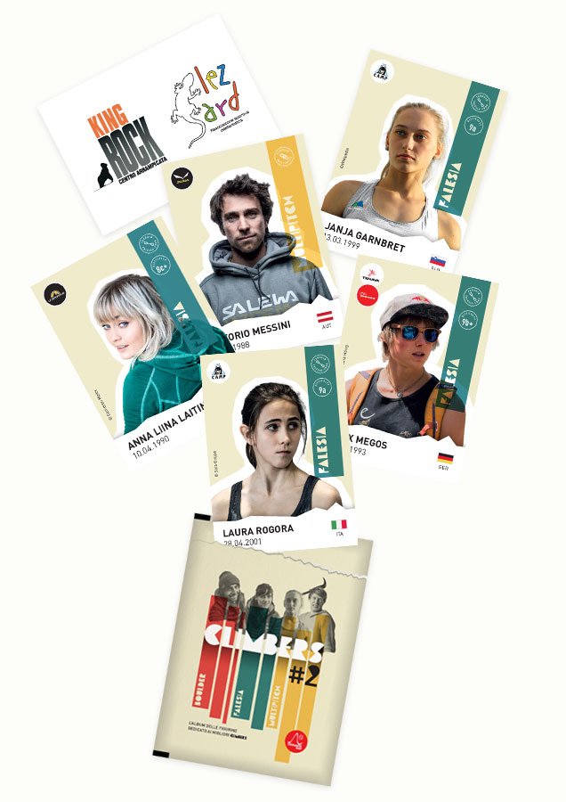 L'unica RACCOLTA di FIGURINE dedicata ai climber torna con la seconda edizione. Nuove fotografie, nuove grafiche, nuovi atleti, la stessa grande passione! Spaziando tra le diverse forme che questa disciplina ha affinato negli anni, CLIMBERS #02 presenta non solo i volti degli interpreti di grandi salite su boulder, falesia e multipitch, ma anche i luoghi mitici dove campioni e appassionati della grande difficoltà si avventurano regalandoci grandi emozioni. Ogni giorno web e social annunciano imprese di altissimo livello che ormai tantissimi pro climber realizzano in tutto il mondo e, volenti o nolenti, a ogni nuova FA o ripetizione che sia, l’occhio cade sul grado. Anche noi nella selezione dei potenziali atleti da inserire abbiamo dovuto inevitabilmente utilizzare questo metro, con la dovuta flessibilità che permette a volte di celebrare di più l’impresa che il numero. CLIMBERS #2: un'edizione Versante Sud con il supporto tecnico di Up-climbing.com e Climbing Radio. Buona raccolta a tutti!